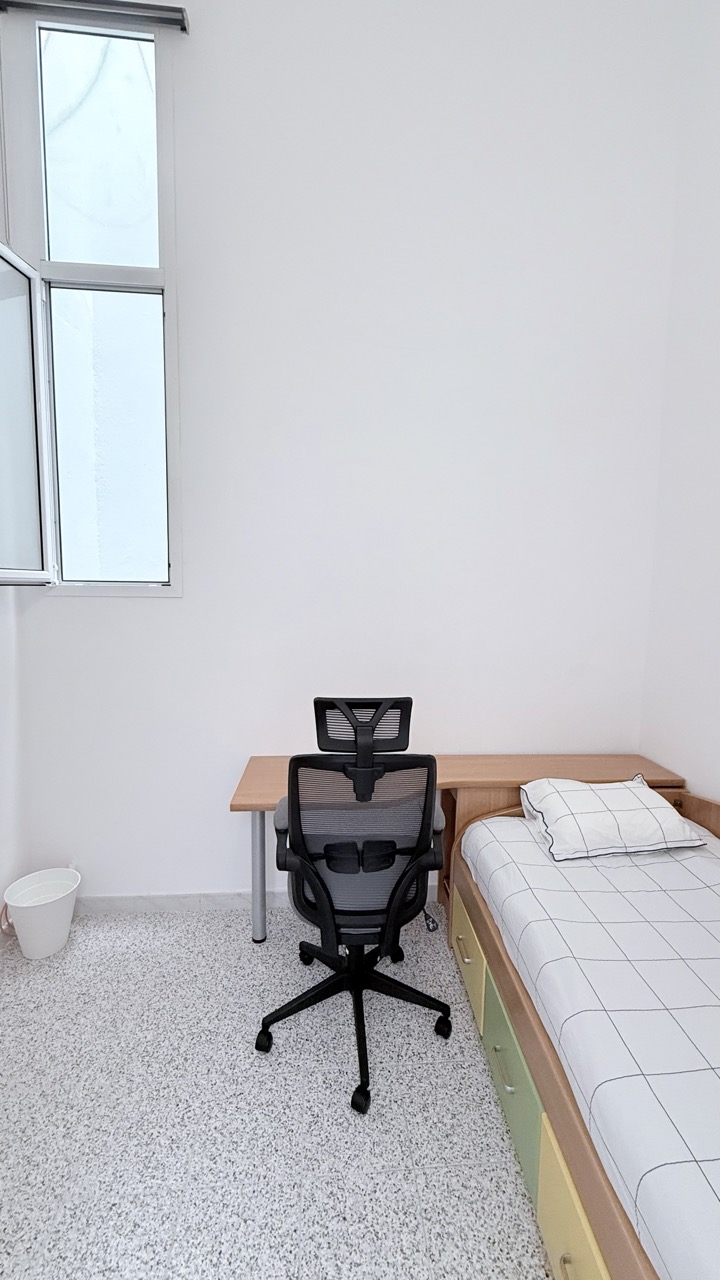 Esta habitación minimalista es ideal para quienes valoran la sencillez, la comodidad y un área dedicada a la productividad durante su estancia en La Isleta Coliving.