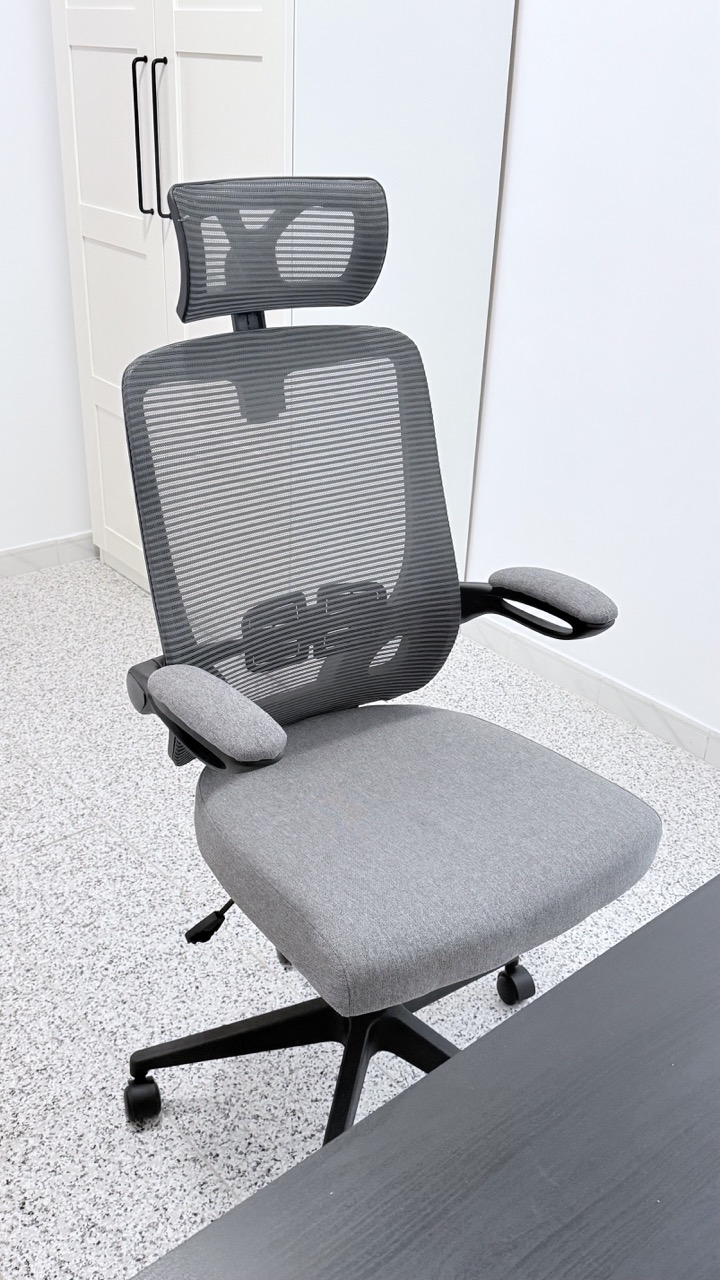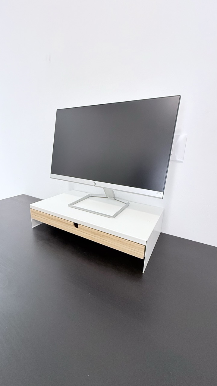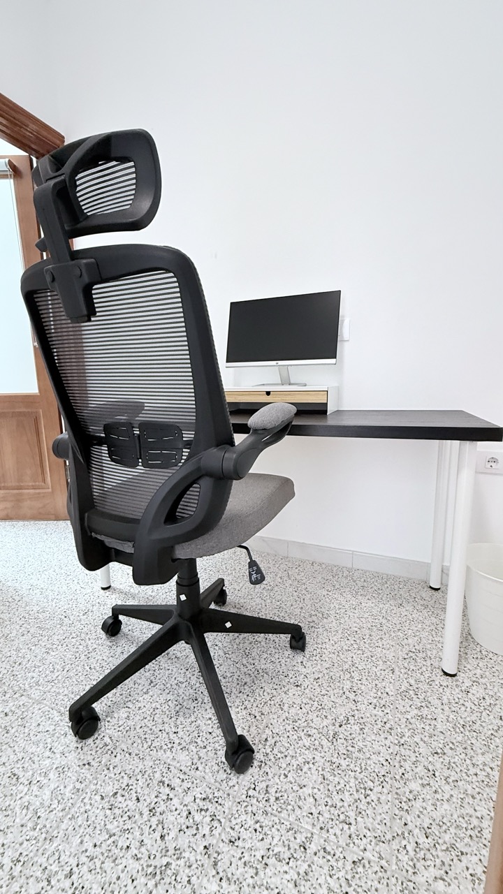 - Modern workspace: A sleek black desk accompanied by an ergonomic chair and a Full HD monitor, providing an ideal environment for remote working or studying.